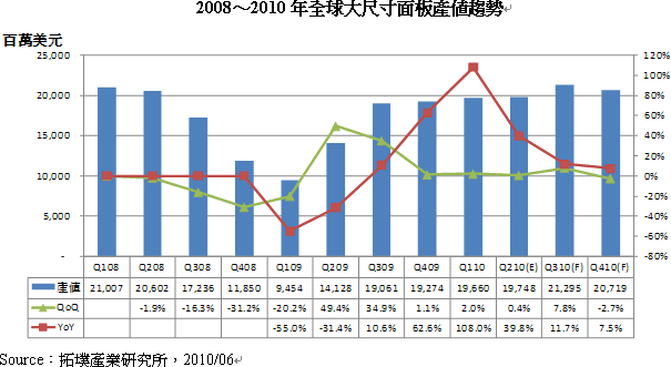 - 2010年全球各季麵板漲跌幅皆維持在10%之內