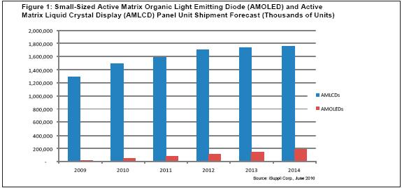 目前,三星流動顯示屏(SMD)和LG顯示器是AMOLED麵板的唯一來源。SMD計劃在2012年前在其AMOLED工廠投資22億美元擴大產量。目前LG的出貨量有限,因其產量尚未提升。除了這兩家韓國廠商,台灣的友達光電和統寶光電計劃在2010年底或2011年初推出AMOLED產品,但目前它們都沒有大量出貨。