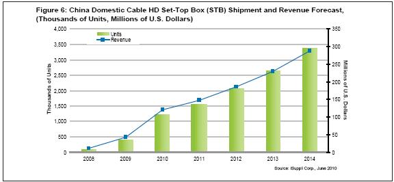 - 2010年中國高清有線機頂盒(STB)出貨量有望增長近兩倍