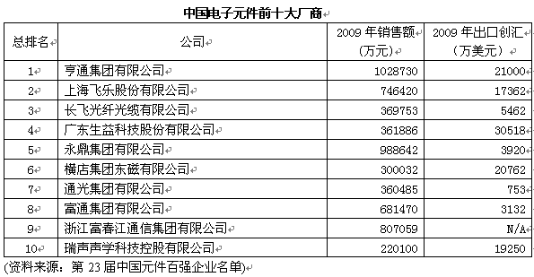 第23屆中國元件百強企業名單於2010年6月22日公布。從本次百強企業的評選結果,以及中國電子元件行業協會(下簡稱中電元協)公布的數據上可以看出,在經曆了全球經濟危機之後,中國電子元件行業正在穩步複蘇,眾多元件企業正在積極尋求在“後危機時代”的生存和發展之道。