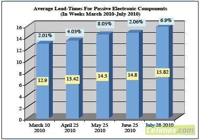 在第二季度,交貨時間被拉長,我們還密切關注了原材料的價格。7月份出現了一次無征兆的跳躍,交貨時間在過去30天裏再一次延長了6.9%,其中鉭電容器的交貨時間增加最為明顯,而MLCC的交付時間則縮短了,因為韓國和日本差不多在同一時間開始供貨(圖1.1)