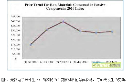 在7月份,無源電子器件在生產過程中所消耗原材料的帕曼指數(Paumanok index)增長了4%。這標誌著,在2010年4月急劇上漲之後的原材料價格整體下降的局麵已經臨近結束(圖1)。