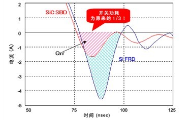 圖2:相比SiFRD(碳化矽快速恢複二極管),SiC-SBD的功率轉換效率大幅提升。(來源:ROHM公司)。