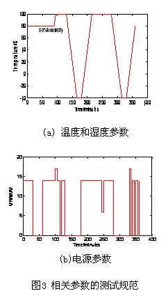 根據PCM各種工況下的極限環境,確定了溫度、濕度、電源電壓等重要參數,建立了一套周期為6小時的測試規範,具體如圖3所示,並通過了利用DSPACE快速開發平台和NI虛擬儀器平台建立的耐久性測試實驗平台的檢驗。