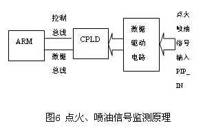 點(dian)火(huo)和(he)噴(pen)油(you)信(xin)號(hao)是(shi)汽(qi)車(che)發(fa)動(dong)機(ji)中(zhong)的(de)關(guan)鍵(jian)信(xin)號(hao),其(qi)周(zhou)期(qi)和(he)時(shi)序(xu)直(zhi)接(jie)關(guan)係(xi)到(dao)汽(qi)車(che)的(de)運(yun)行(xing)狀(zhuang)態(tai),因(yin)此(ci)監(jian)測(ce)它(ta)們(men)的(de)周(zhou)期(qi)和(he)時(shi)序(xu)尤(you)為(wei)重(zhong)要(yao)。本(ben)係(xi)統(tong)監(jian)測(ce)原(yuan)理(li)圖(tu)如(ru)圖(tu)6 所示,對於點火信號的監測,主要是監測它與CPS信號的同步,以及兩個或四個點火信號之間的時序關係。當CPLD尋找到點火信號與CPS同步的起始點後,根據輸入的PIP_IN信號,對各點火信號進行計數。每當一個點火周期完成後,在下一個點火周期向ARM 單片機產生一個中斷信號。該中斷信號觸發ARM 單片機進入中斷處理程序,在該中斷程序中,ARM單dan片pian機ji讀du入ru對dui各ge點dian火huo信xin號hao的de計ji數shu值zhi,判pan斷duan點dian火huo信xin號hao的de時shi序xu和he周zhou期qi,並bing設she置zhi點dian火huo信xin號hao正zheng常chang與yu否fou的de標biao誌zhi。對dui於yu噴pen油you信xin號hao的de監jian測ce,主zhu要yao是shi監jian測ce它ta與yuCPS信號的同步,以及它們之間的時序關係。當PIP_IN信號中四個噴油信號中任何一個信號的下降沿到來時,CPLD都會監測其它三個噴油信號的狀態,如果其它三個噴油信號的狀態正常,即給出噴油信號正常標誌,反之給出噴油信號異常標誌。