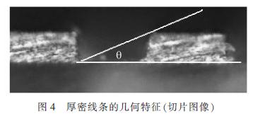 圖3(a)是普通光源照射情況下所獲得的厚密線寬圖像,圖3(b)表示光源照射後的切麵成像情況。