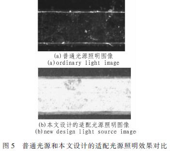 基於以上條件,本文設計了專用於PCB厚密板的適配環形光源,為考核光源的實際效果,將光源和鏡頭對準PCB上同一區域。鏡頭倍率也調節至相等。采集到如圖5所示的對比圖像。