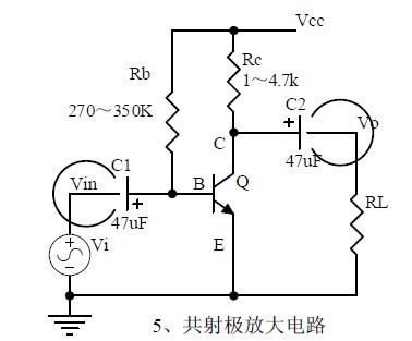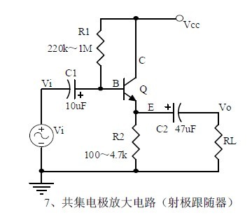 [page]1、元器件的作用、電路的用途、電壓放大倍數、輸入和輸出的信號電壓相位關係、交流和直流等效電路圖。電路的輸入和輸出阻抗