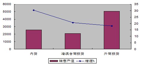 三資企業實現銷售產值7132億元,增長18.7%;出口交貨值4932億元,增長14.4%,分別低於行業平均水平2.9和0.4個百分點。其中港澳台企業銷售產值增長20.7%,外商投資企業增長18.0%。