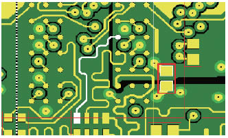 發fa射she或huo者zhe耦ou合he是shi由you某mou些xie幾ji何he規gui則ze相xiang違wei背bei造zao成cheng的de。例li如ru,考kao慮lv電dian流liu回hui流liu的de路lu徑jing,每mei一yi個ge信xin號hao都dou有you一yi條tiao信xin號hao軌gui跡ji預yu置zhi好hao的de路lu徑jing,但dan是shi在zai電dian源yuan層ceng和he接jie地di層ceng經jing常chang有you回hui路lu出chu現xian。回hui路lu電dian流liu總zong是shi選xuan擇ze電dian阻zu最zui小xiao的de路lu徑jing;同(tong)時(shi)在(zai)高(gao)頻(pin)條(tiao)件(jian)下(xia),選(xuan)擇(ze)阻(zu)抗(kang)最(zui)低(di)的(de)路(lu)徑(jing)。這(zhe)種(zhong)新(xin)軟(ruan)件(jian)可(ke)以(yi)確(que)定(ding)哪(na)條(tiao)返(fan)回(hui)路(lu)徑(jing)是(shi)不(bu)連(lian)續(xu)的(de)。例(li)如(ru),這(zhe)個(ge)路(lu)徑(jing)有(you)可(ke)能(neng)由(you)於(yu)分(fen)離(li)的(de)平(ping)麵(mian)而(er)被(bei)中(zhong)斷(duan)。如(ru)果(guo)回(hui)路(lu)在(zai)幾(ji)何(he)位(wei)置(zhi)上(shang)不(bu)能(neng)跟(gen)隨(sui)信(xin)號(hao)路(lu)徑(jing),那(na)麼(me)回(hui)路(lu)電(dian)流(liu)則(ze)會(hui)使(shi)用(yong)一(yi)條(tiao)不(bu)同(tong)的(de)路(lu)徑(jing)。依(yi)賴(lai)於(yu)回(hui)路(lu)電(dian)流(liu)周(zhou)圍(wei)區(qu)域(yu)的(de)大(da)小(xiao),會(hui)出(chu)現(xian)一(yi)個(ge)天(tian)線(xian)輻(fu)射(she)或(huo)接(jie)收(shou)幹(gan)擾(rao)信(xin)號(hao),導(dao)致(zhi)EMC符合性的失敗或者可能的設計故障。這個軟件工具識別電源供電層中這樣不連續的銅對高頻來說是否由一個或者多個電容器相連結(如圖1)。那些電容器會形成一條對回路電流有著低阻抗的路徑,從而避免不希望的回路。