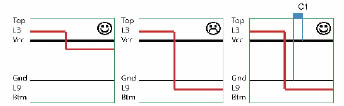 圖1由於電容距離信號太遠以至於不能連接斷層而導致的EMC問題