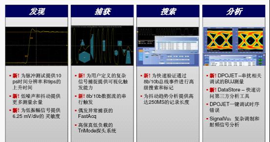 圖4:從發現、捕獲到搜索、分析,DPO/DSA70000D係列33GHz示波器囊括了多個行業第一和關鍵創新點。