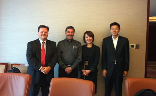 照片說明:(從左到右)Mark Burr-Lonnon( Mouser歐亞區副總裁), Conrad Fernandes(LeCroy公司亞太區副總裁),Daphne( Mouser 亞太區市場與業務拓展總監),管立虹(LeCroy公司亞太區目錄銷售經理)