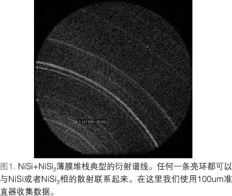 xiangfenxiyaoqiushixianlejieganxingqudexiang。yizhongzidonghuadefengnihesuanfayonglaihuodequxianzhongmeiyigefengdeweizhiheqiangduzhi。jiangshiyanfengzhideweizhiyuganxingquxiangdepuxianzuoduibi,laiquedinggaixiangshifoucunzai。lingwai,quxianzhongbunengbeipipeidefengyiweizhegengduodexiangcunzai。liruzaitu2中,如果取樣程式認為在測量的矽片上隻存在鎳單矽化物,盡管事實上相的鑒定需要手工完成,但多餘的峰(來自於NiSi2)仍然會被軟件標記。為了測量不同相的比例,一種針對多相係統的應用遵循了這樣的原理,即一個獨立相衍射峰的強度(一級近似)與薄膜中對應相的數量成比例。