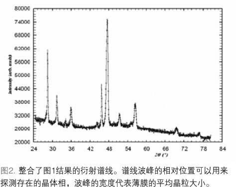yinweishouguipianchanchuliangdexianzhi,zaizhexieshebeishangjinxingcanliuyinglideceliangbingbuxianshi。shengxiadexiangwei,jinglidaxiaohezhigoudoushikeceliangdecanshu。womensuomianlindetiaozhanshiruhejiangtu1和圖2所示的龐大圖形數據量精簡為幾個相關參數,而這些參數可以加入統計過程控製(SPC)圖(tu)表(biao)。在(zai)這(zhe)些(xie)參(can)數(shu)當(dang)中(zhong),晶(jing)粒(li)尺(chi)寸(cun)是(shi)最(zui)容(rong)易(yi)獲(huo)得(de)的(de),對(dui)於(yu)給(gei)定(ding)的(de)相(xiang)而(er)言(yan),衍(yan)射(she)峰(feng)之(zhi)間(jian)的(de)寬(kuan)度(du)與(yu)材(cai)料(liao)晶(jing)粒(li)的(de)平(ping)均(jun)尺(chi)寸(cun)成(cheng)反(fan)比(bi)。另(ling)外(wai)兩(liang)個(ge)參(can)數(shu)的(de)測(ce)量(liang)則(ze)麵(mian)臨(lin)著(zhe)較(jiao)大(da)的(de)挑(tiao)戰(zhan),因(yin)為(wei)一(yi)般(ban)而(er)言(yan),它(ta)們(men)依(yi)賴(lai)於(yu)精(jing)通(tong)X射線衍射理論和應用的個人對圖形數據進行個別的詮釋。