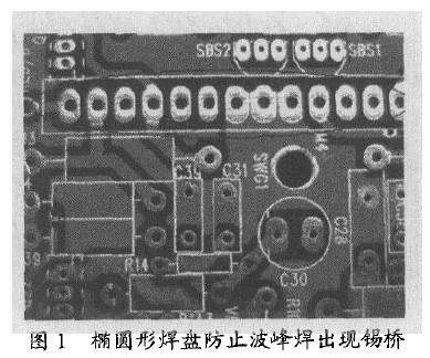 4)對於具有較高引腳數的器件如接線座或扁平電纜,應使用橢圓形焊盤而不是圓形以防止波峰焊時出現錫橋(圖1)。