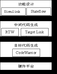 在功能設計階段使用的主要工具是MATLAB。通過使用MATLAB提供的Simulink、Stateflow等工具,完成控製方案的設計、功能模塊的設計、控製算法的設計等任務,並進行初步的仿真模擬工作。在原型仿真階段使用的主要工具是dSPACE。使用dSPACE提供的快速控製原型-RCP工具完成離線的仿真工作。在開始該階段之前,需要使用Real Time Workshop、Targetlink等工具完成由Simulink、Stateflow等產生的代碼向標準 C代碼的轉換工作。