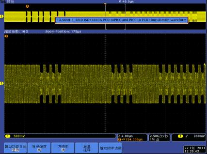 下麵我們以一個13.56MHz的RFID讀寫器係統為例,介紹MDO4000的跨域調試應用。