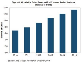 據IHS iSuppligongsideqicheyanjiuzhuantibaogao,zaijishujinbudetuidongxia,yujijinnianquanqiuchezaigaodangyinxiangxitongxiaoshouezengchanglvjiangdadaoliangweishu,jiexialaidejinianyejiangbaochiqiangjinshitou。qicheyinxiangbentiyezaiweirongnapingguoiPod等移動數字音樂播放器留出更多空間。