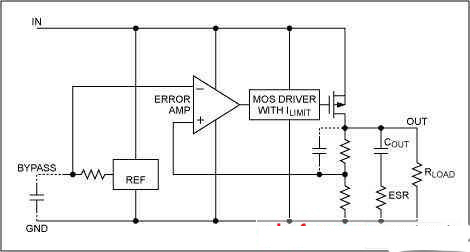 產生壓差的主要原因是,在調整元件中有一個P溝道的MOS管。當LDO工作時MOS管道通等效為一個電阻,RDS(ON),