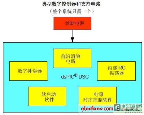 單獨一個DSC消除了相同參數的重複測量,並可從內部提供不同控製或保護特性的所有選項。DSC也有助於係統對故障狀態作出比分立模擬控製器更快速、更高效的反應。例如,在一個兩級AC-DC 模擬電源中,如果故障出現在下級轉換器中,除非這個故障狀況已經被傳送給PFC 控製器,否則前端PFC 升壓轉換器將無法識別這個故障。而數字控製器能檢測到整個係統的故障狀態,無論故障發生在何處,幾乎都能在瞬間作出反應。
