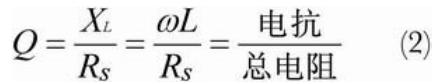 我們將電感線圈電抗(XL)與總電阻(Rs)之比稱為品質因素Q,參見公式(2)。品質因素被定義為電感器的品質參數。損耗越高,電感器作為儲能元件的品質就越低。