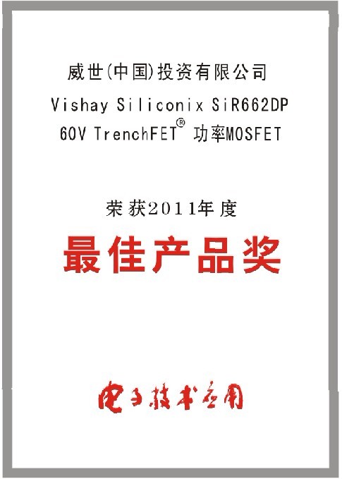 - Vishay功率MOSFET榮獲《電子技術應用》雜誌“中國優秀電子產品”獎