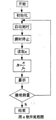 係統軟件包括對各工作電路的初始化設置,根據分頻計數電路得到的n值,計算時間間隔時間間隔Δt,送給顯示電路顯示。流程圖如圖4所示。
