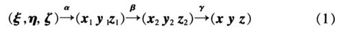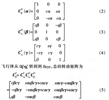 在此,以cx表示cosx、sx表示sinx,正切以tgx表示。各次轉動相應的方向餘弦矩陣分別為
