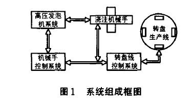 由圖可知,機械手控製係統是整個汽車儀表板生產線的核心,它主要完成高精度的定位控製、與上位機通訊、數據采集、故障報警,以及控製發泡機高壓循環及澆注時間,接收來自轉盤線的速度信號以適應轉盤不同運行方式。高壓發泡機係統主要完成ISO(異氰酸酯)和POL(聚醚多元醇)2種發泡料的流量、壓力調節及原料循環控製。轉盤控製係統主要完成轉盤速度調節及模具開合控製。