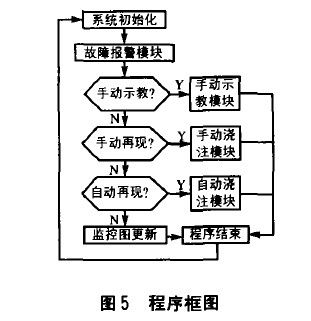 係統上位機監控軟件采用西門子公司WINCCV5.0軟件,運用該軟件設計顯示澆注軌跡及示教參數輸入等,中文人機界麵,操作方便。