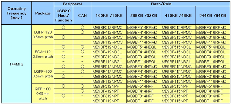 高性能產品組:MB9B510R/410/310/100係列