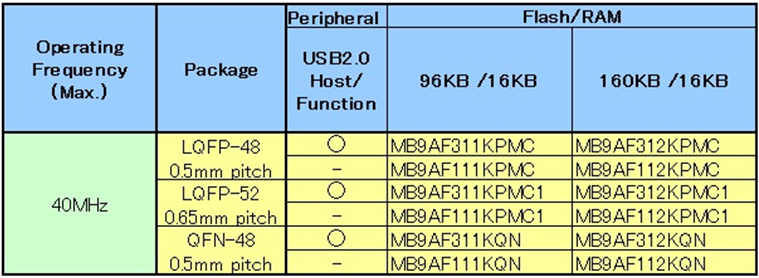 基本產品組:MB9A310K/110 係列 (12款產品)