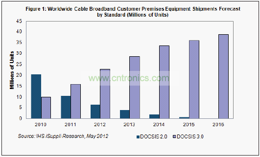- DOCSIS 3.0設備的出貨量將繼續增長,到2016年達到3870萬個