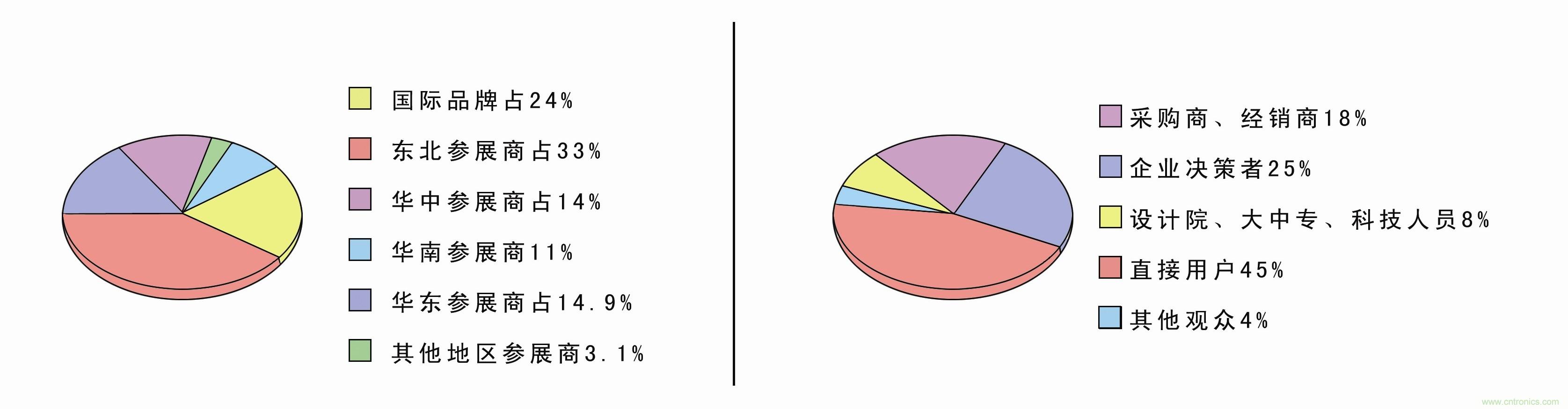 上屆展會於2012年5月16-18日在大連星海會展中心舉行,展會規模已達一萬多平方米,四百多個展位。世界知名的廠商:西門子、ABB、施耐德、三菱電機、奧托尼克斯、歐姆龍、LG、艾默生、寶帝、威圖、米思米、町洋機電、彙川等企業齊聚一堂,美國、日本、韓國等國外展團的大量參與,使展會更具吸引力;展會的觀眾主要來自東北、華北、華東、華中、西北、台灣、香港及日本、韓國、俄羅斯等地,其主要為相關行業的決策人士、技術人員及采購負責人。本屆展會為切合您的需求,直接麵向專業買家、進出口商、分銷商、代理商和直接用戶,為您締造更多的商機!此次展會有參展商三百多家,參觀商兩萬餘人,其中各占比例如下: