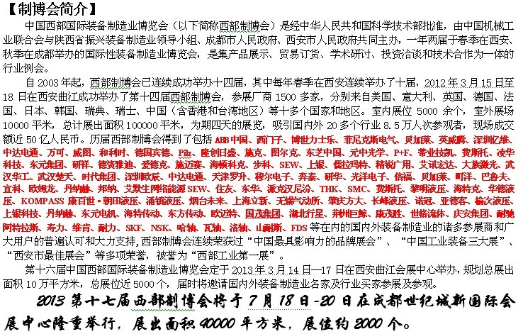 2013第十七屆中國西部國際裝備製造業博覽會