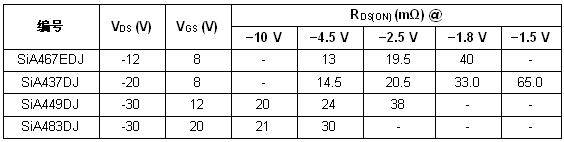 對於電源管理中的負載和電池開關,以及智能手機、平板電腦、移動計算設備、硬盤驅動器和固態驅動的同步降壓轉換應用裏的控製開關,-12 V SiA467EDJ提供了13mΩ(-4.5V)的極低導通電阻。-20V SiA437DJ的導通電阻為14.5mΩ(-4.5V),-30V SiA449DJ和SiA483DJ的導通電阻分別隻有20mΩ(-10V)和21mΩ(-10V)。另外,SiA437DJ和SiA467EDJ的電流等級高達30A,承受很大的湧入電流,可用於負載開關。