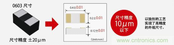 1.采用獨創的工藝技術,實現世界最小※的03015尺寸(0.3 mm×0.15 mm)