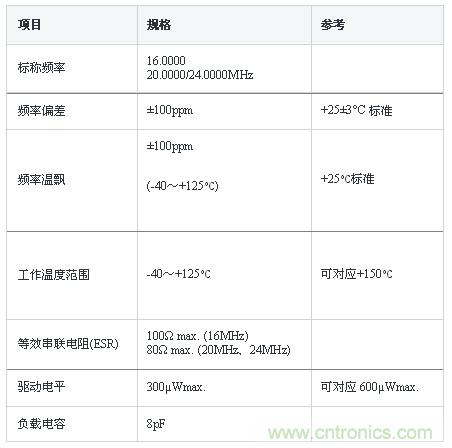 現在的車載ECU間的通信中最常用的CAN是經ISO11898和ISO11519-2認證的通信規格,最大通信速度可達1Mbps。這裏所使用的時鍾設備的精度是由可達到ECU間的通信標準的配備條件來決定的,一般來說±3,000ppm精度的話是不會產生使用上的問題。