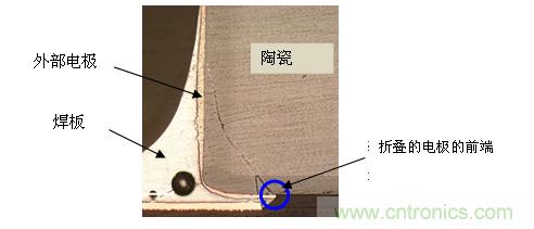 圖3:一般性的MLCC的電路板偏轉應力(橫截麵照片)