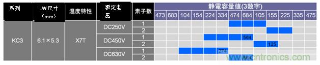 GCJ係列、KCM/KC3係列的125°C對應產品一覽如圖13、圖14、圖15所示。