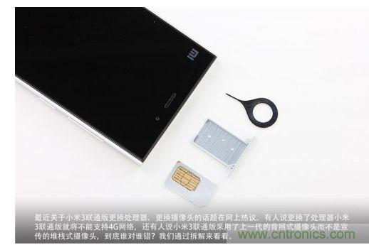 聯通版小米3在上市之後接連遭遇了更換攝像頭和處理器的風波當中,有人說更換了處理器的小米3就不能支持4G網絡了,還有人說小米3用的是上一代背照式攝像頭而不是宣傳的堆棧式攝像頭,到底這些說法正確嗎?我們通過拆解來看一看吧。