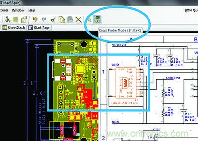 6.0版本中的交叉探測(X-probe)功能能夠在軟件內實現原理圖與PCB設計視圖之間的即時引用,從而進一步加快設計過程。通常情況下在PCB視圖中元件的識別是比較直觀、容(rong)易(yi)的(de),但(dan)在(zai)原(yuan)理(li)圖(tu)中(zhong)找(zhao)到(dao)該(gai)元(yuan)件(jian)的(de)對(dui)應(ying)符(fu)號(hao)卻(que)不(bu)那(na)麼(me)容(rong)易(yi),除(chu)非(fei)用(yong)戶(hu)對(dui)整(zheng)個(ge)係(xi)統(tong)都(dou)了(le)如(ru)指(zhi)掌(zhang)。通(tong)過(guo)交(jiao)叉(cha)探(tan)測(ce)功(gong)能(neng),用(yong)戶(hu)隻(zhi)需(xu)在(zai)任(ren)一(yi)視(shi)圖(tu)中(zhong)點(dian)擊(ji)某(mou)個(ge)元(yuan)件(jian),即(ji)可(ke)迅(xun)速(su)跳(tiao)轉(zhuan)到(dao)對(dui)應(ying)視(shi)圖(tu)中(zhong)的(de)同(tong)一(yi)元(yuan)件(jian)。該(gai)功(gong)能(neng)可(ke)從(cong)PCB視圖跳轉到原理圖,反之亦然。