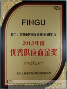 圖1:世強獲得武漢凡穀“2013年度優秀供應商金獎”