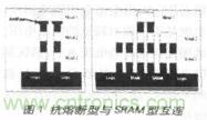 Actel 公司的抗熔斷型FPGA是用先進的CMOS工藝製作的,內部采用專利的金屬-金屬抗熔斷元件。抗熔斷互連就象純金屬互連一樣,而與用晶體管開關的SRAM 互連截然不同。抗熔斷結構消除了CRAM互連開關中圖騰柱結構的功耗,並且縮小了器件的尺寸,使全部連線資源都位於矽片的頂部。這種結構可以更形象地用掩 埋在金屬層上的“模塊海洋”來描述,極大地減少了芯片的尺寸以及開關的電阻與電容,從而降低了功耗(圖1)。