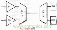 高 密mi度du設she計ji的de布bu局ju必bi須xu留liu有you空kong地di並bing相xiang當dang地di展zhan開kai,才cai可ke完wan成cheng,這zhe便bian導dao致zhi連lian線xian長chang,每mei個ge線xian上shang開kai關guan多duo,這zhe些xie因yin素su產chan生sheng不bu良liang的de時shi序xu結jie果guo並bing增zeng加jia了le功gong耗hao。此ci外wai,塊kuai中zhong的de邏luo輯ji趨qu向xiang於yu 分fen類lei集ji結jie在zai一yi起qi,總zong線xian跨kua越yue不bu同tong塊kuai時shi需xu走zou過guo較jiao長chang的de距ju離li。在zai一yi個ge設she計ji中zhong采cai用yong時shi分fen複fu用yong寬kuan總zong線xian技ji術shu,可ke減jian少shao總zong線xian的de數shu量liang,有you利li於yu時shi序xu和he功gong耗hao。再zai者zhe,在zaiDSP設計中, 數據是相關的,這表明大多數數據位並未改變狀態。攜帶相關數據的總線應盡量複用在一起,進一步減少MUX、DEMUX邏輯中的開關活動(圖5)。
