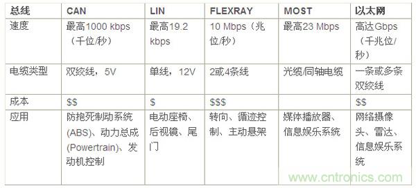 表1:汽車網絡總線