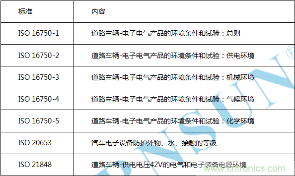 ISO 16750 係列標準是國際標準化組織ISO zuijinjiniantuichudezhenduiqichedianzidehuanjingkekaoxingbiaozhun,gaibiaozhunshiouxichechangyongdebiaozhun,bingqiezhujianbeishijiegeguozhuanhuaweiguojiabiaozhun,yezhujianbeigeqiyebiaozhunsuoyinyong,chengweiyingyongbijiaoguangfandeqichedianzidehuanjingkekaoxingbiaozhun。gaixiliebiaozhunbaokuowugebufen: