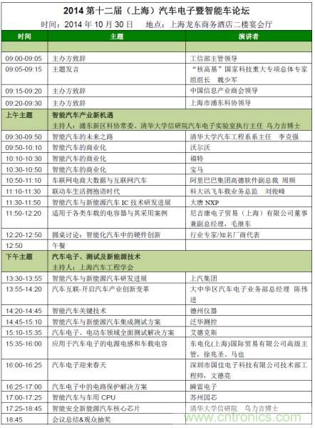 我愛方案網 (www.52solution.com)、電子元件技術網 (wap.0-fzl.cn) 攜手中國電子展、清華大學、上海市浦東新區科學技術協會、上海市汽車工程學會順應時勢,將在2014年10月30日共同主辦第十二屆(上海)汽qi車che電dian子zi暨ji智zhi能neng車che論lun壇tan。論lun壇tan將jiang集ji合he全quan球qiu智zhi能neng汽qi車che發fa展zhan最zui前qian沿yan的de科ke技ji,彙hui聚ju全quan球qiu智zhi能neng汽qi車che行xing業ye最zui尖jian端duan的de人ren才cai,推tui動dong汽qi車che電dian子zi技ji術shu的de跨kua界jie融rong合he,打da造zao中zhong國guo第di一yi個ge專zhuan注zhu智zhi能neng汽qi車che的de專zhuan業ye論lun壇tan。論lun壇tan將jiang集ji合he全quan球qiu智zhi能neng汽qi車che與yu新xin能neng源yuan汽qi車che發fa展zhan最zui前qian沿yan的de科ke技ji,彙hui聚ju全quan球qiu智zhi能neng汽qi車che與yu新xin能neng源yuan汽qi車che行xing業ye最zui尖jian端duan的de人ren才cai,推tui動dongIT業與汽車業的進一步融合,促進工業產業鏈升級,帶動信息產業發展,為中國智能汽車和新能源汽車產業趕超國際一流貢獻綿薄之力!