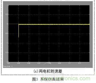 PMSM1轉速受到PMSM2負載改變的影響,出現微小的下降,然後快速恢複穩定,轉矩也出現微小的波動後迅速恢複穩定。說明基於svpwm調速的PID雙閉環控製係統有較強的魯棒性,雙電機間偏差耦合補償策略當某一電機負載改變時,另一個電機有良好的跟隨性能。